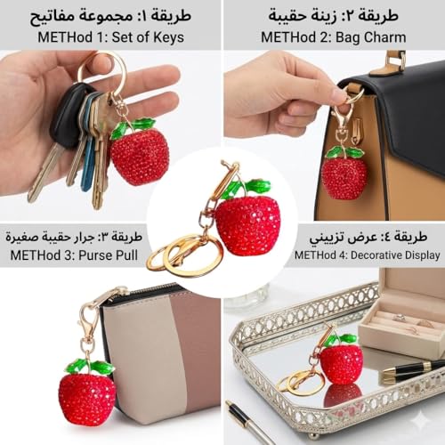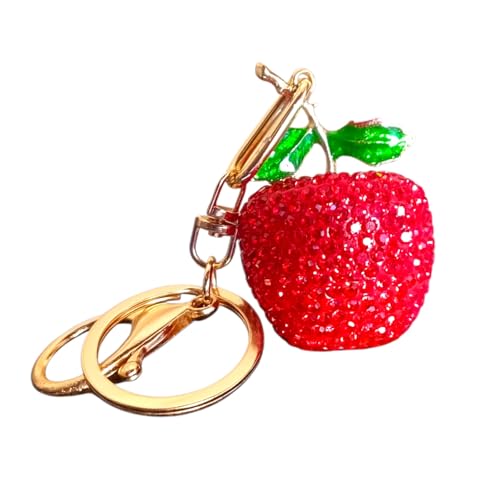 Generic - ميدالية مفاتيح بتصميم فاكهة مرصعة بالكريستال الأحمر، إكسسوار حقائب وزينة، متعددة الاستخدامات