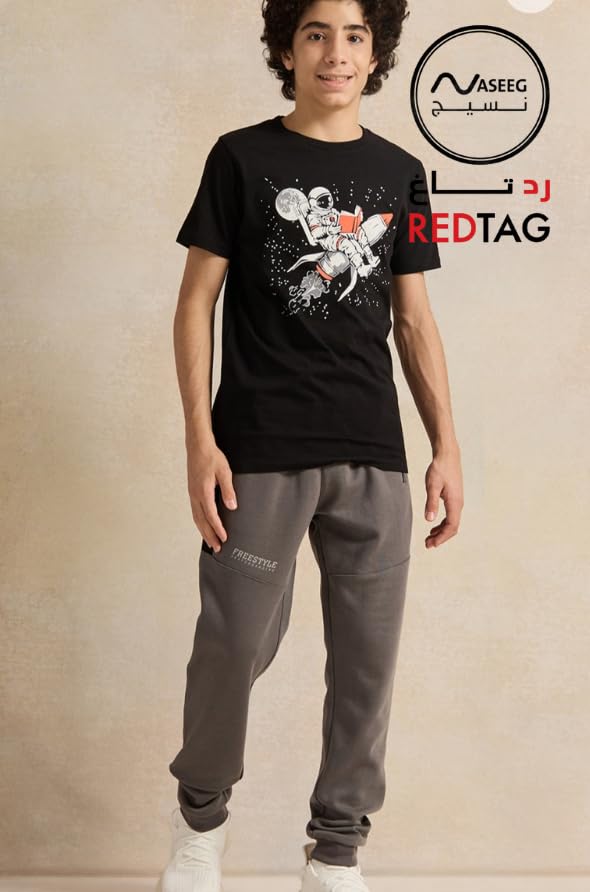 Generic - ردتاغ، تيشيرت أسود بطبعة رائد فضاء يقرأ كتاب، تصميم فضائي، قطن، قصير الأكمام 8-9 سنوات