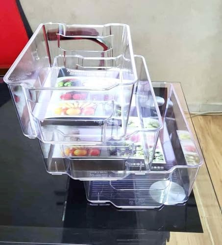 Generic - مجموعة علب لتنظيم الثلاجة من البلاستيك الشفاف قابلة للوضع بداخل بعضها مع مقابض بفتحات للفريزر والمطبخ وسطح الطاولة والدواليب والرفوف لتخزين الطعام (4)