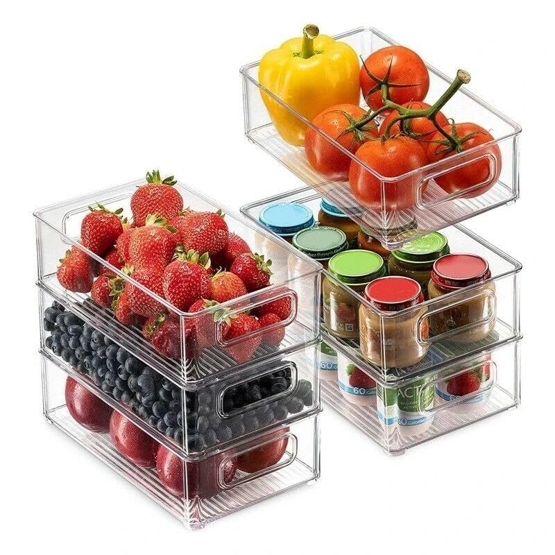 - حافظ على ثلاجتك أو الفريزر أو سطح الطاولة أو خزانة المطبخ أو خزانة المؤن منظمة بدقة مع صناديق التخزين هذه القابلة للتكديس.