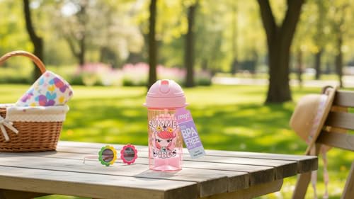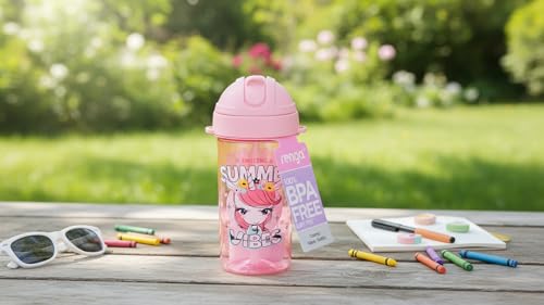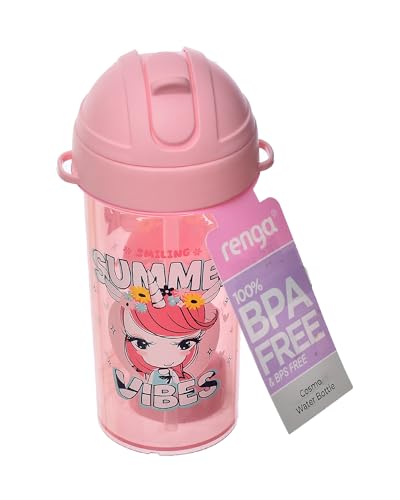 Renga - Renga Cosmo Plastic Water Bottle with Straw 415 ml Pink