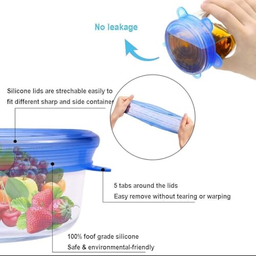 Generic - Reusable Silicone Lids Set of 6 Different Sizes for Food, Drinks, Fruits | From Generic