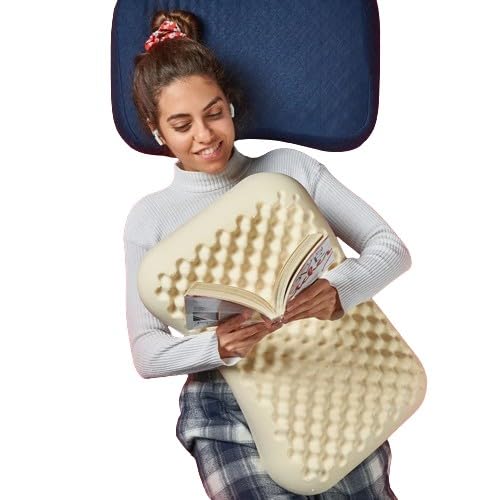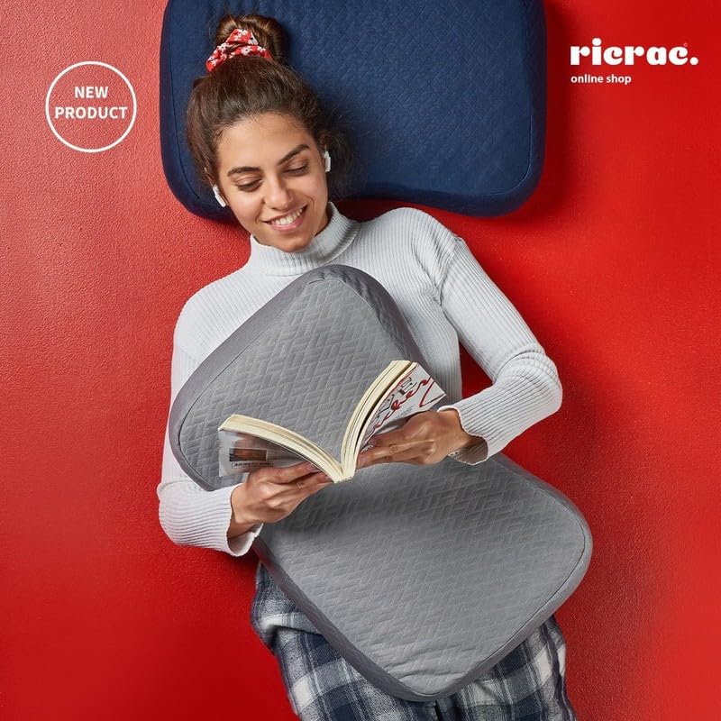 ricrac - Ricrac Natural Latex Massage Curve Pillow, 55 cm x 38.5 cm x 12 cm Size, Light Grey