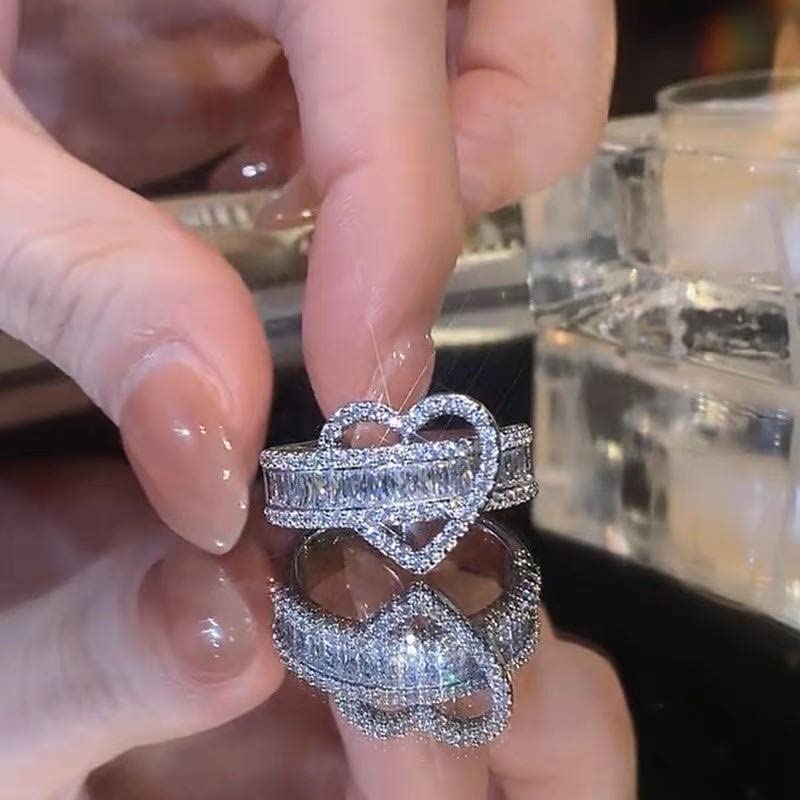 Generic - Ring Design Heart Zircon Stainless Steel (SIZE 7) - Plated18K White Gold