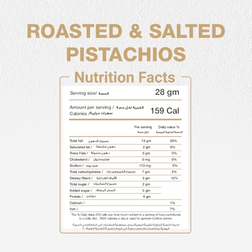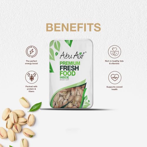 - Premium Quality: Abu Auf Roasted & Salted Pistachios are sourced from the finest farms, ensuring unmatched quality and freshness. Carefully selected and roasted to retain their natural flavor and quality, ideal for healthy snacking.