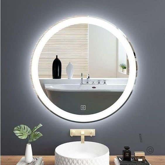 Generic - مرآة حمام دائرية بإضاءة LED خلفية، تعمل باللمس، 70 سم