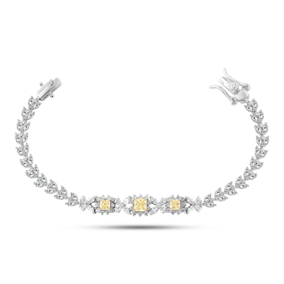 Generic - سوار فضة عيار 925 مرصع بالزركون بتصميم رويال، لون أصفر