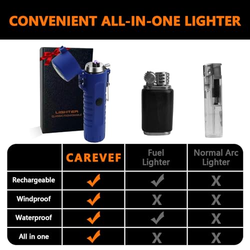 - Reliable Weatherproof Lighter⚠️Equipped with IP67 rated waterproof rubber cover and plasma dual arc ignition design. RSBYE's outdoor lighters are wind proof, water proof, splash proof and dust proof. It performs at its best in harsh weather conditions, even in winter storms, high altitudes, or cold, wet environments. The ideal companion for outdoor activities such as camping, hiking, fishing, hunting, or exploring the wilderness.