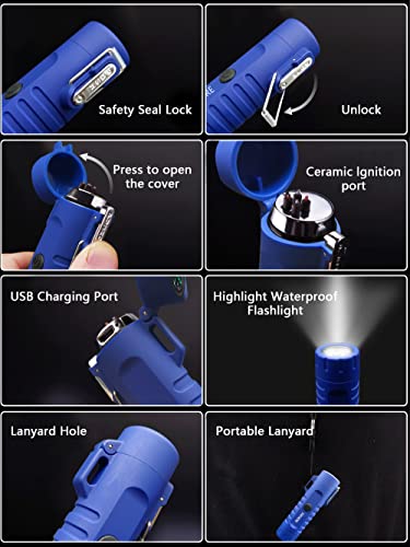 RSBYE - Plasma Windproof Arc Lighter - USB Rechargeable, Dual Arc, Waterproof, Flameless Electric Lighter With Lanyard for Camping, Hiking, Hunting, Outdoor Survival (3-IN-1/Blue)