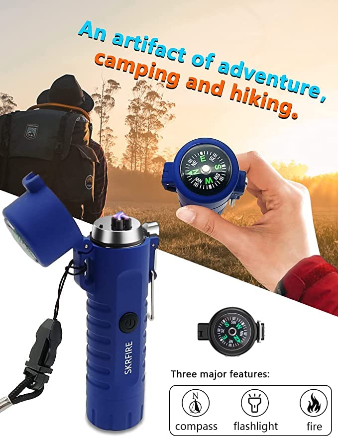 - 3-in-1 LED Lighters for Outdoor Emergencies⚠️Purchase one product and get all three essential outdoor tools: Plasma dual arc lighter, flashlight and compass. Its compact size and lanyard make it ideal for outdoor activities. Whether you are lighting bonfires, barbecues, fireplaces, candles, fireworks; Still looking for directions and exits in the dark, this versatile gadget won't disappoint. Help you realize your dream of outdoor exploration.