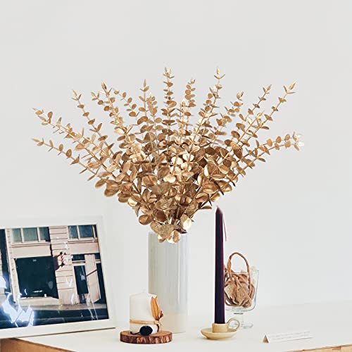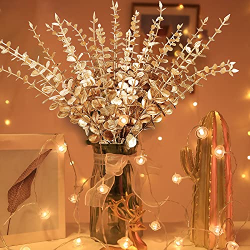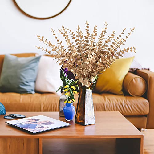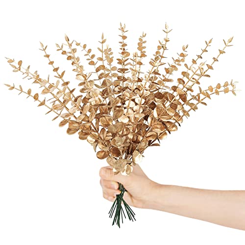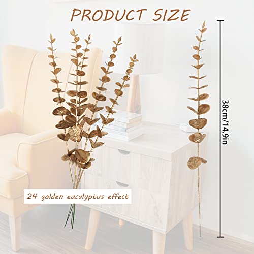 Ruidazon - 24 Pcs Artificial Gold Eucalyptus Leaves, Faux Eucalyptus Stems Fake Golden Eucalyptus Branches Christmas Gold Flowers Plants for Home DIY Flower Arrangement Christmas Decorations