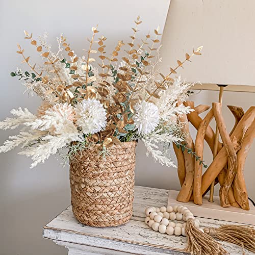 - Material & Realistic : Golden pigments sprayed, made by premium plastic and iron wires wrapped allows our faux eucalyptus stems to keep the real touch feeling and flexibility of fresh eucalyptus.The stem can be bent and trimmed at will to fit in any vases in your home.