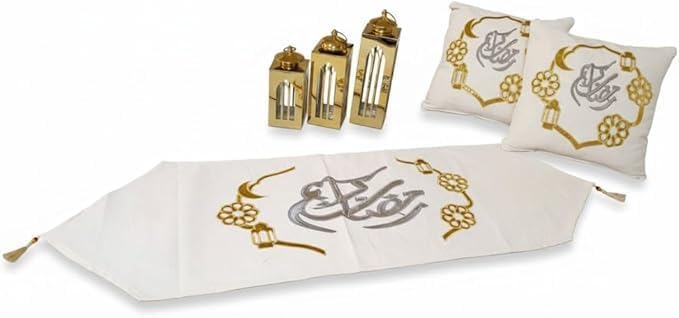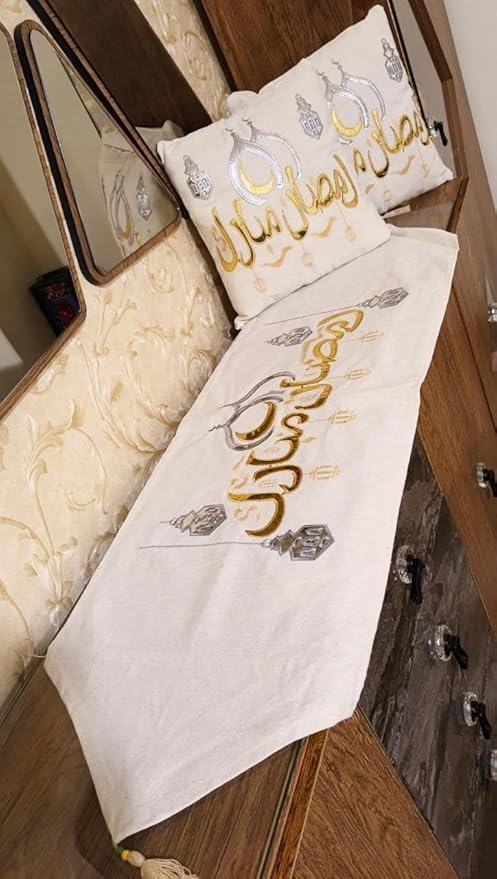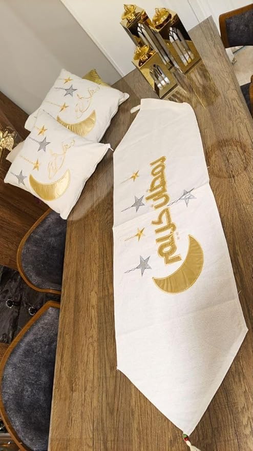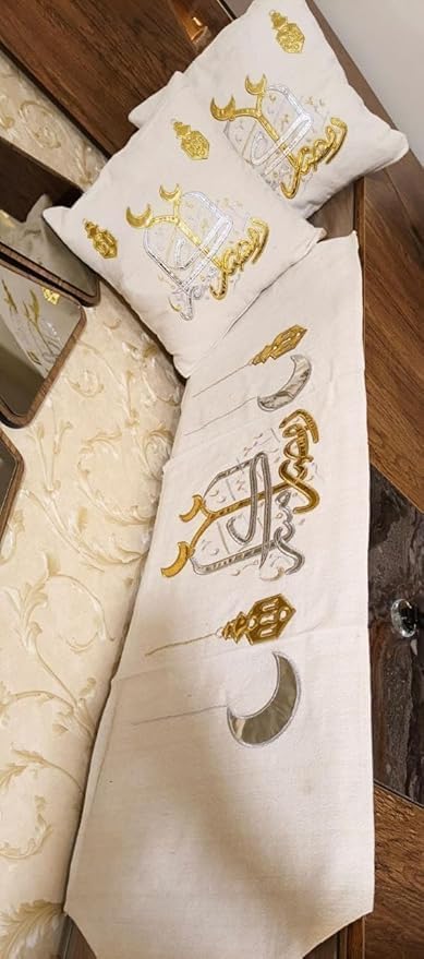 Generic - طقم RUNNER مع 2 كوشن بتصميم رمضان – طقم ديكور رمضان يضيف لمسة مميزة للسفرة وغرفة المعيشة – مناسب كهدية رمضان خماات عاليه الجوده