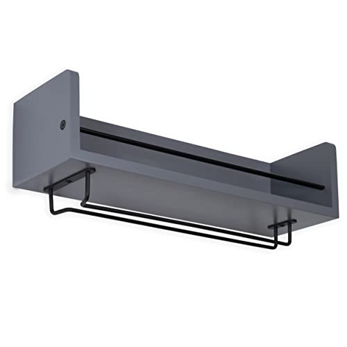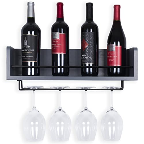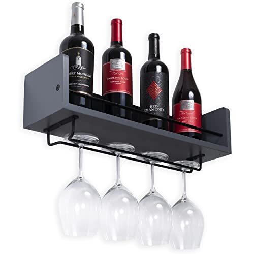 Rustic State - Rustic State William Wall Mount Wooden Wine Bottle and Stemware Rack Glassware Holder Floating Shelf- Home, Kitchen, Dining Room, Bar Décor Storage Organizer| Gray
