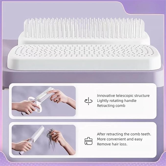 - 🎀【Anti-static Smoothing Brush】Retractable rotating lifting self-cleaning brush, cleaning hair in 1 second, rotating smoothly and dexterously, simple appearance, frosted texture, ergonomic handle, better combing feeling.