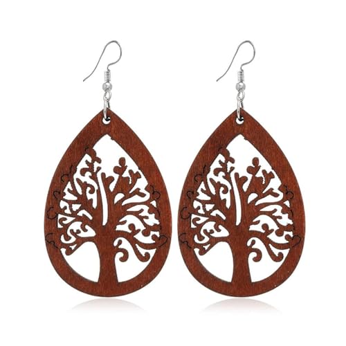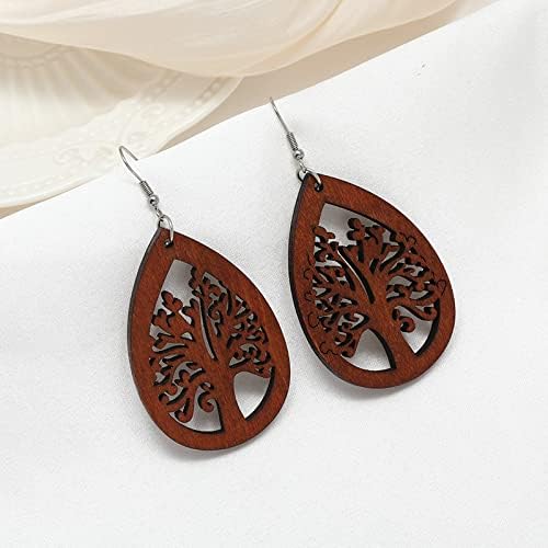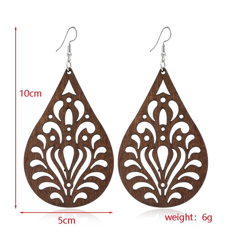 fashion mania - Set of brown wooden earrings Retro simple Chinese style light weight autumn and winter earrings