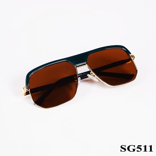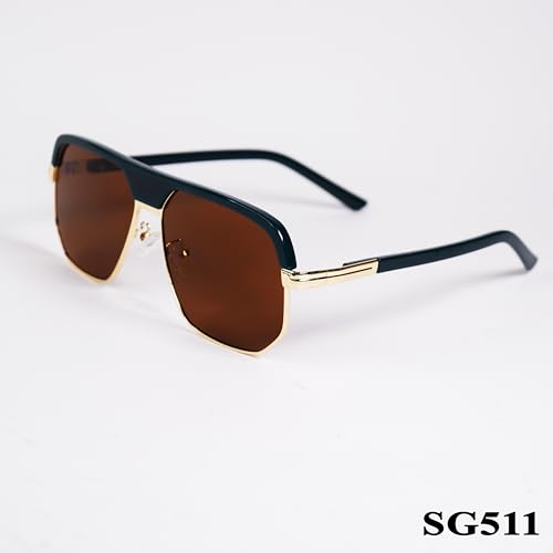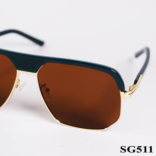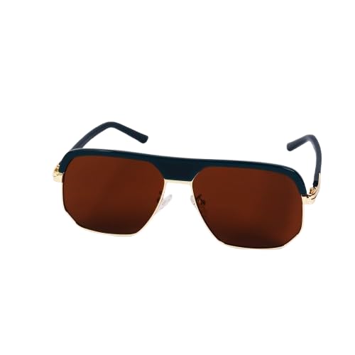 Generic - SG511 Polarized Rectangular Sunglasses, Navy Blue Frame, Brown Lenses