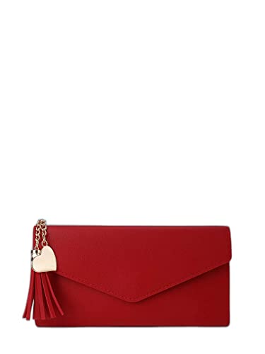 SHEIN - SheIn Tassel Charm Fold Over Long Purse Red