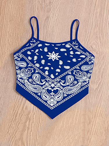 SHEIN - شي ان بلوزة بحمالات رفيعة وطبعة بيزلي من في سي ايه واي
