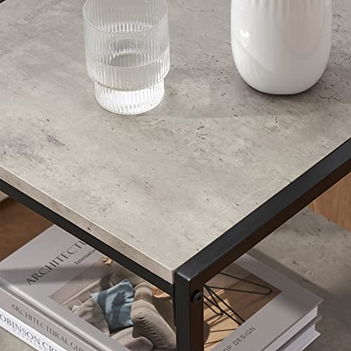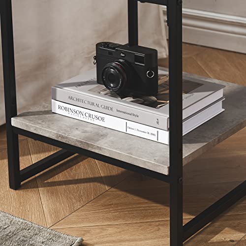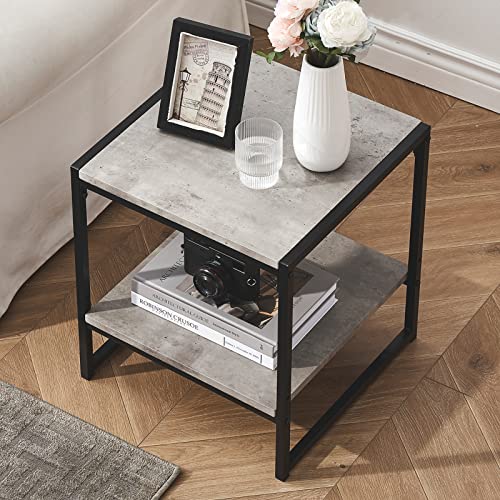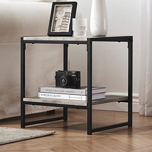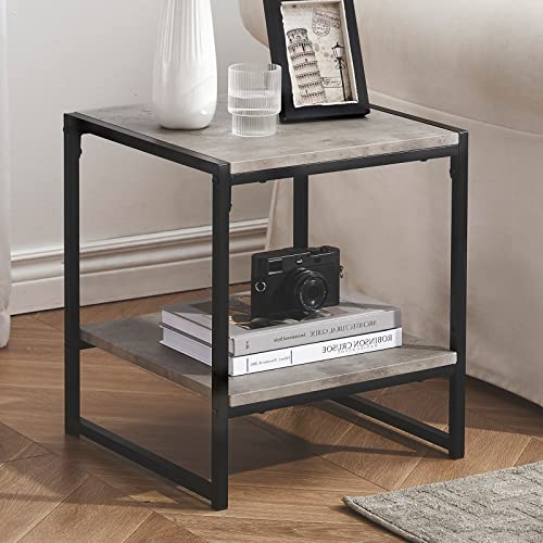 SHOCOKO - طاولة جانبية بتصميم منتصف القرن لغرفة المعيشة، طاولة جانبية مربعة مع مساحة تخزين، طاولة جانبية عصرية مع اطار معدني قوي، لون رمادي