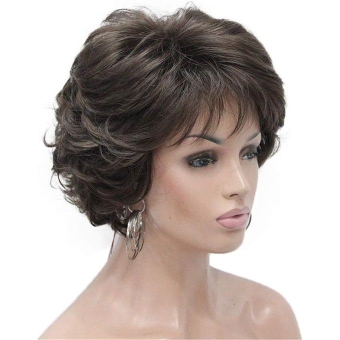 Generic - Short Curly Brown Wigs for Women Layered Synthetic Wigs with Bangs