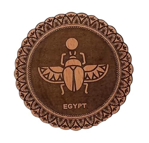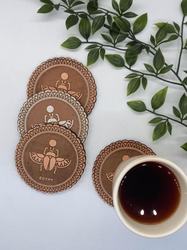 SIGN & DESINE - قاعدة أكواب/كوستر خشب دائرية فرعونية حفر ليزر، سمك 6 ملم 9.5 × 9.5 × 0.6 سم، لون هافان
