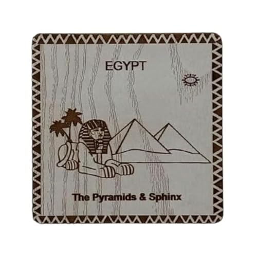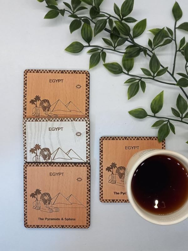 SIGN & DESINE - SIGN & DESIGN Wood Square Coaster/Coaster Pharaonic Laser Engraving Ghayer The Pyramids and Apoll and the Thickness 6 ml 9.5 x 9.5 x 0.6 cm - Beige