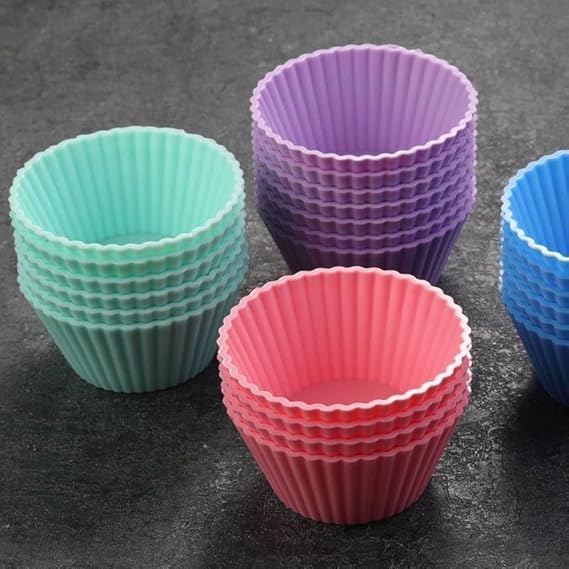 Generic - Silicone Cupcake Baking Molds - Non-Stick Baking Molds for Muffin, Chocolate, Desserts - Reusable - 12 Colorful Cupcake Molds
