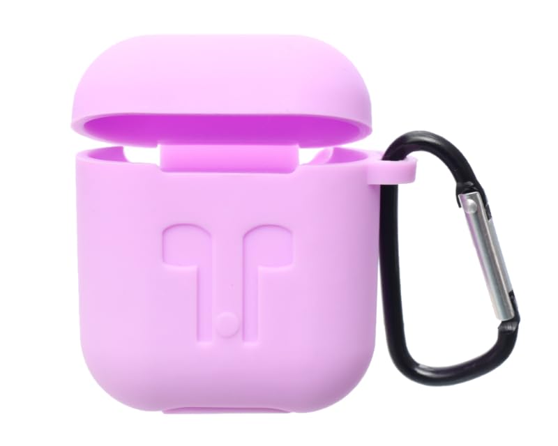 Generic - Silicone Shock Proof Wireless Earbud Case with Carabiner, Easy to Disassemble, Scratch-Resistant, Full Protective Compatible with Airpods 1 - Lavender