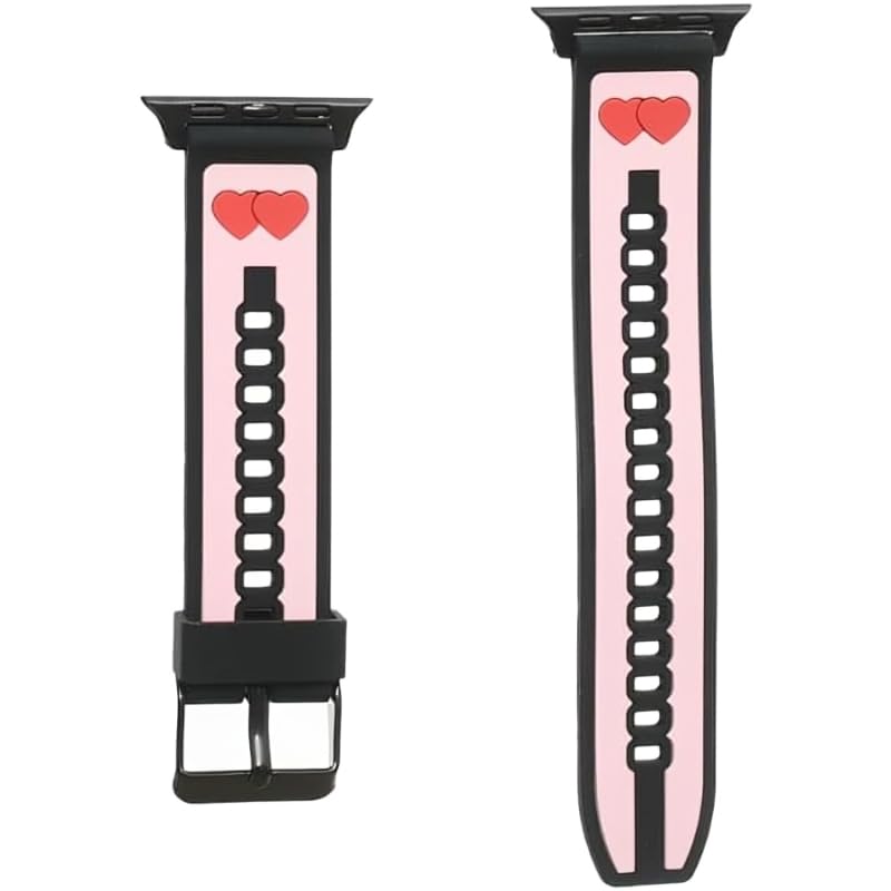 Generic - سوار ساعة بديل مقاوم للماء من السيليكون الناعم المريح بتصميم قلوب لطيفة متوافق مع الساعات الذكية مقاس 38/40/41 ملم - متعدد الألوان (B)