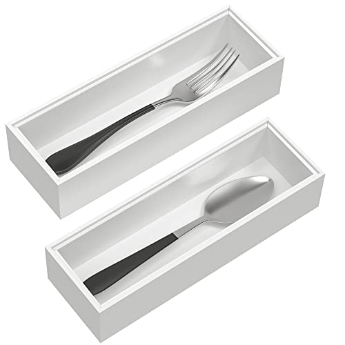 VeyFey - Silverware Tray for Drawer, Stackable Kitchen Bamboo Drawer Organizer 9" x 3" x 2" Set of 2