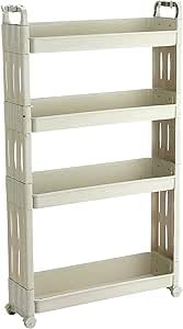 - SLIM DESIGN: Space-saving mobile storage cart with 4 tiers, perfect for narrow spaces between appliances or furniture - only 12.5 cm deep