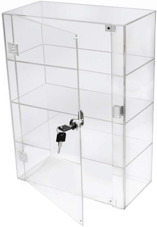 Generic - SM4U Acrylic Display Cabinet with Lock, 3 Shelves, Clear Glass Showcase with Keys, Wall Mountable