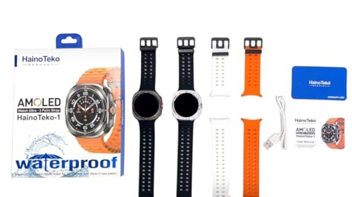 Generic - ساعة ذكية من هاينو تيكو بشاشة اموليد عالية الدقة مع 3 أساور (فولاذ مقاوم للصدأ + جلد + سيليكون)، صنعت في ألمانيا، لون أسود، موديل HainoTeko-1