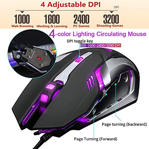 Smilee - Smilee Gaming Keyboard and Mouse Combo Large Mouse Pad Mechanical Feel RGB Backlit 3200 DPI Mouse for Windows PC (Keyboard and Mouse Set) (Black RGB)