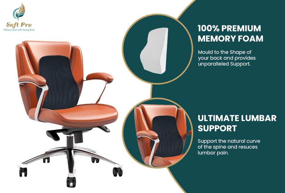 - Ergonomic Office Chair Comfort*: Our Soft Pro office chair cushion provides superior lumbar support for office chair users, promoting healthy spinal alignment and relieving back pain.