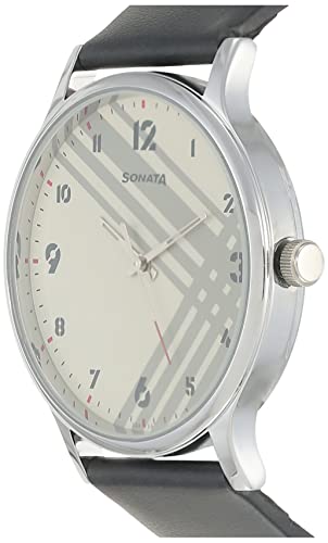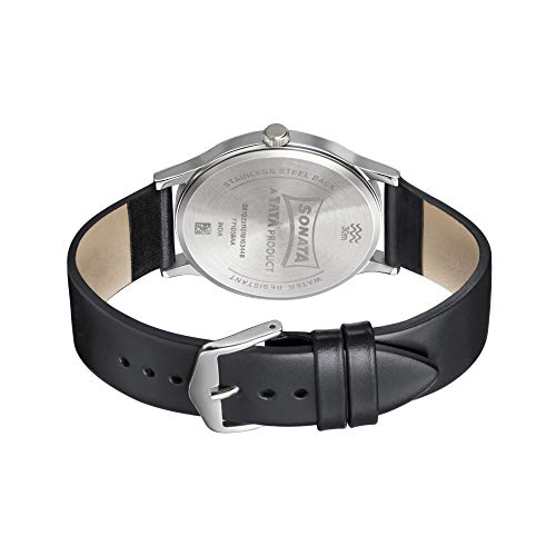 Sonata - Sonata Watch for Men, Quartz Movement, Analog Display, Black Leather Band Strap-NP77105SL01W