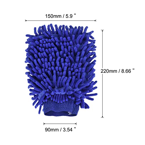 sourcing map - sourcing map Microfiber Soft Chenille Wash Mitten Double Sided Dusting Glove for House Cleaning, Dark Blue