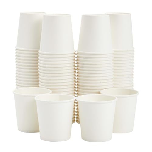 Sparkle and Bash - Sparkle and Bash 100 Pack 4 Oz Mini Disposable Paper Cups for Espresso, Mouthwash, Tea, Coffee - Plain White