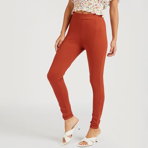 Splash - سبلاش بنطلون لجينجز سادة سكيني متوسط الارتفاع بلون بني - مقاس 10 6292374448647