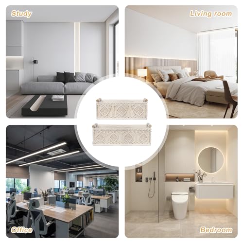 - Macrame storage baskets: This boho storage basket set presents an exquisite lace design and gives your home a romantic and elegant atmosphere. The combination of cotton rope and wood is warm and elegant, practical and beautiful at the same time. Whether your decoration style is classic, rustic or modern, this bathroom storage fits perfectly.