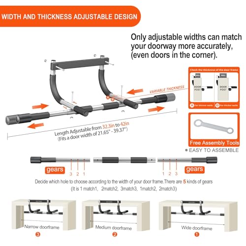 SPORTSZONE - قضيب سحب قابل للتعديل لصالة الالعاب الرياضية المنزلية من سبورتس زون - قضيب رفع الذقن شديد التحمل للياقة البدنية لتقوية الجزء العلوي من الجسم والتمارين الرياضية