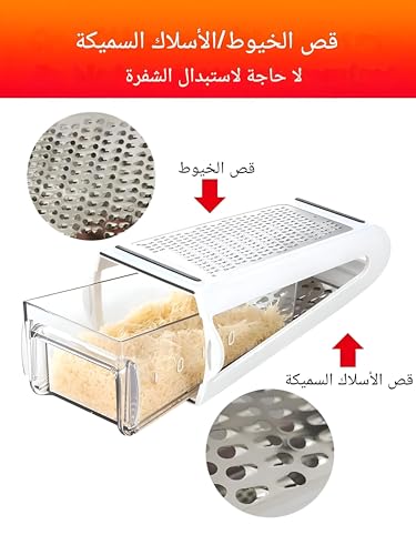 - Double-sided design: The food box grater and box cheese grater feature two sides, offering versatility in grating options. This multifunctional cheese grater has 2 sides of the integrated design, easy to use, space-saving, easy to store. Plus, its space-saving design means it takes up less space in your kitchen drawers or countertops, making it a practical option for those with limited kitchen space or who prefer an organized culinary workspace