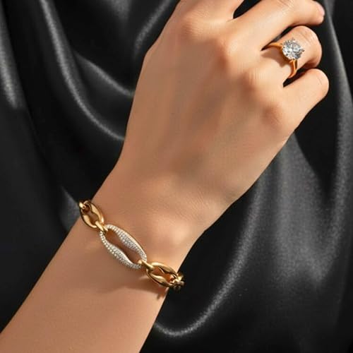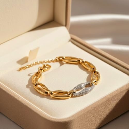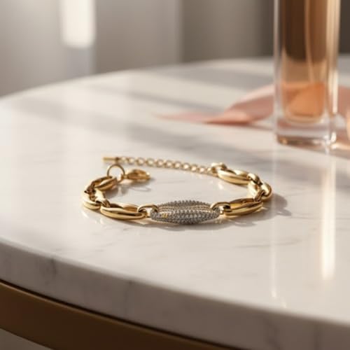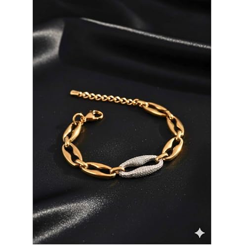 Generic - Stainless Steel Bracelet for Women - Luxury Gold Interlocking Jewels Circle with Diamond-like Sparkling Lobes - Stylish Accessory Gift for Women Girls