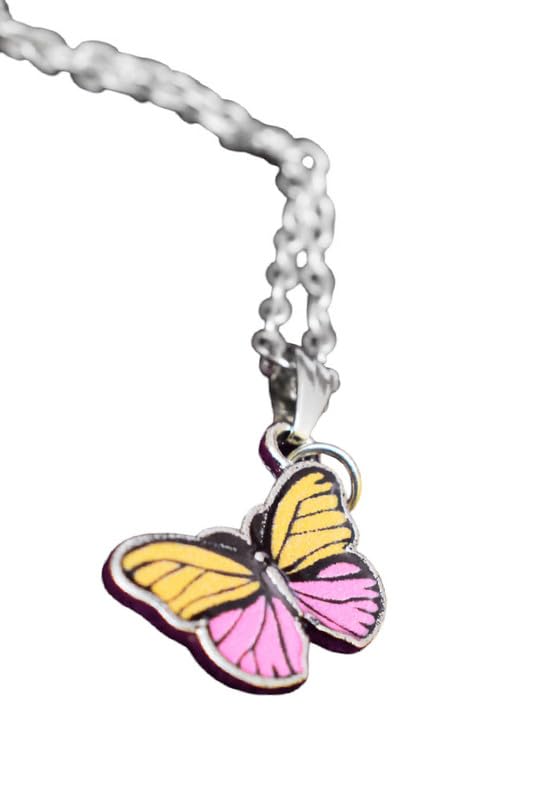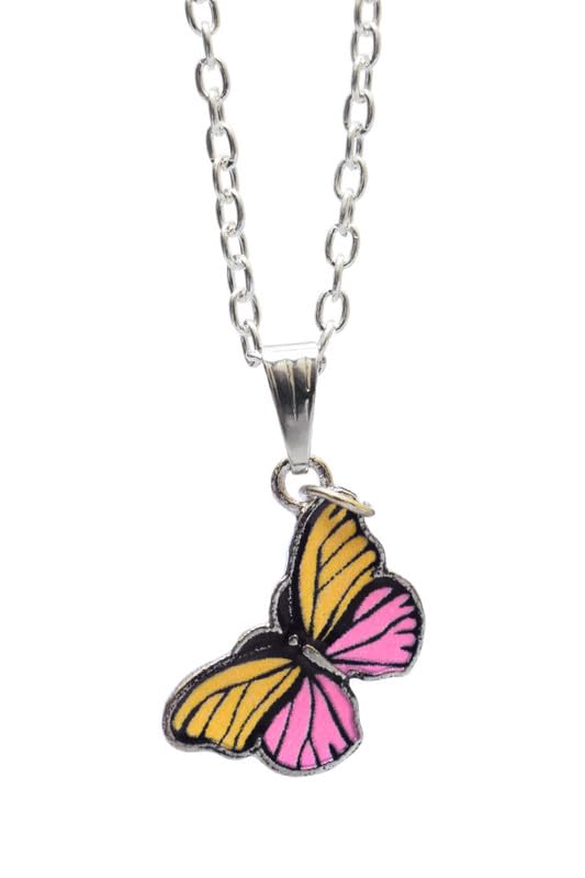 Generic - سلسلة بتصميم فراشة من فولاذ مقاوم للصدأ للنساء - أصفر ووردي