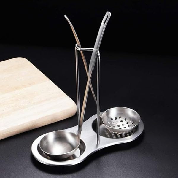 Generic - Stainless Steel Double Spoon Rest, Kitchen Utensil and Pot Lid Holder, Ladle Stand Organizer