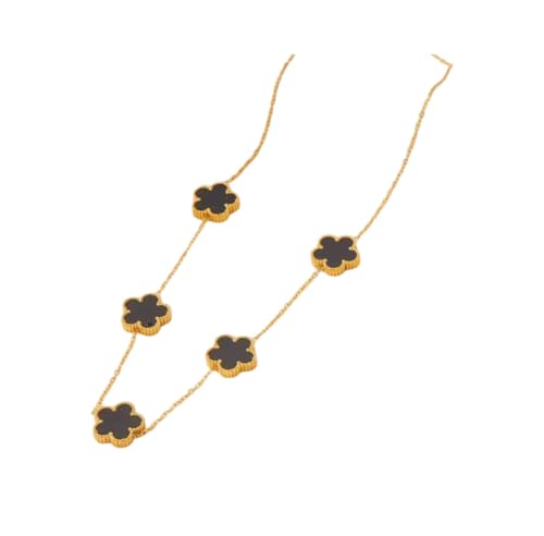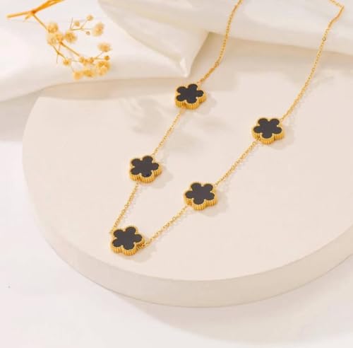 Generic - عقد من الستانلس ستيل بتصميم ورقة البرسيم للنساء، لون اسود