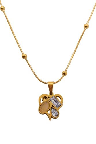 Generic - Stainless Steel Multi-Shape Gemstones Necklace For Women - Gold