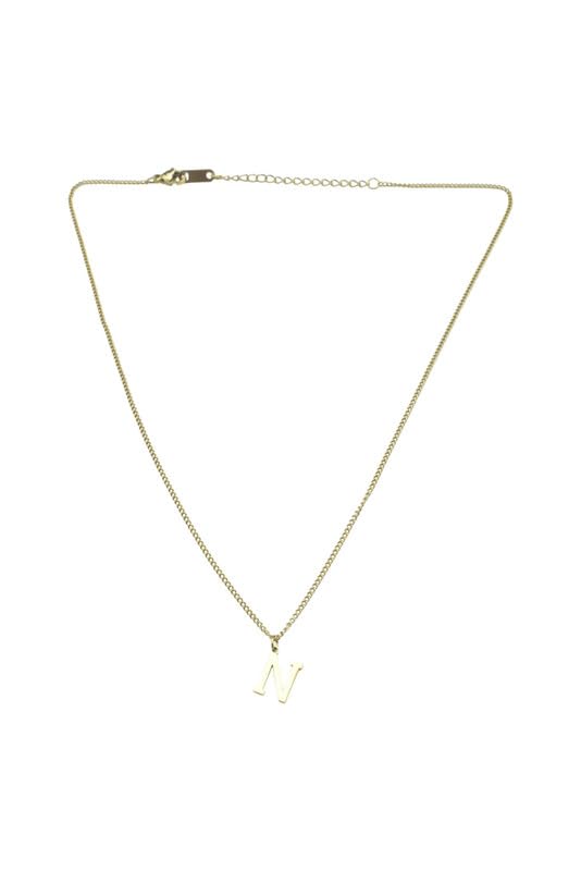 Generic - Stainless Steel Necklace with Initial 'N' Pendant for Women - Gold