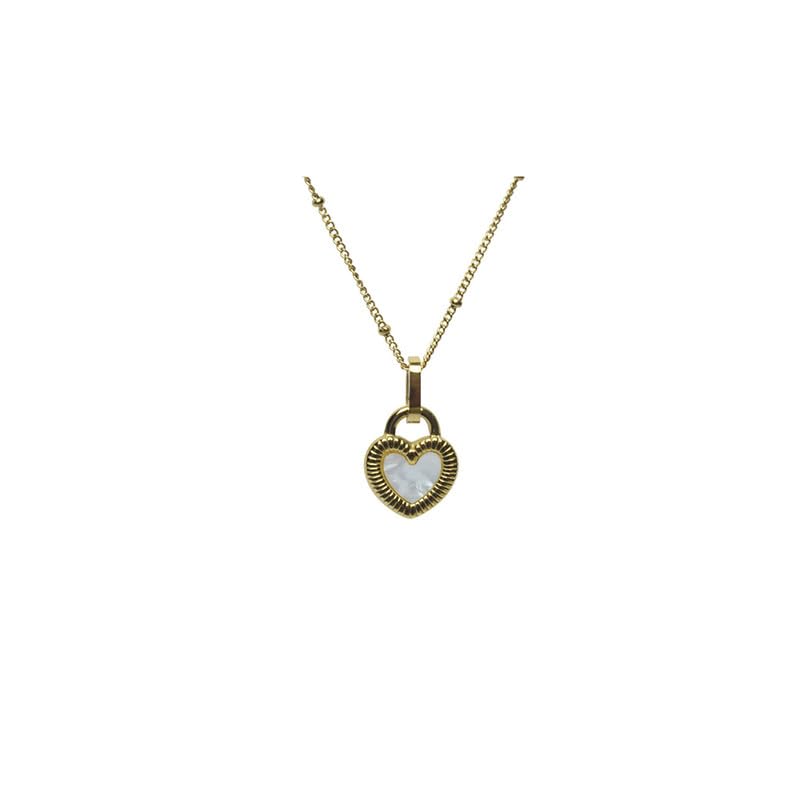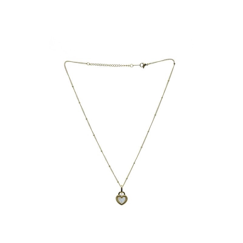 Generic - Stainless Steel Necklace With Zigzag Heart Design For Girl - Gold White